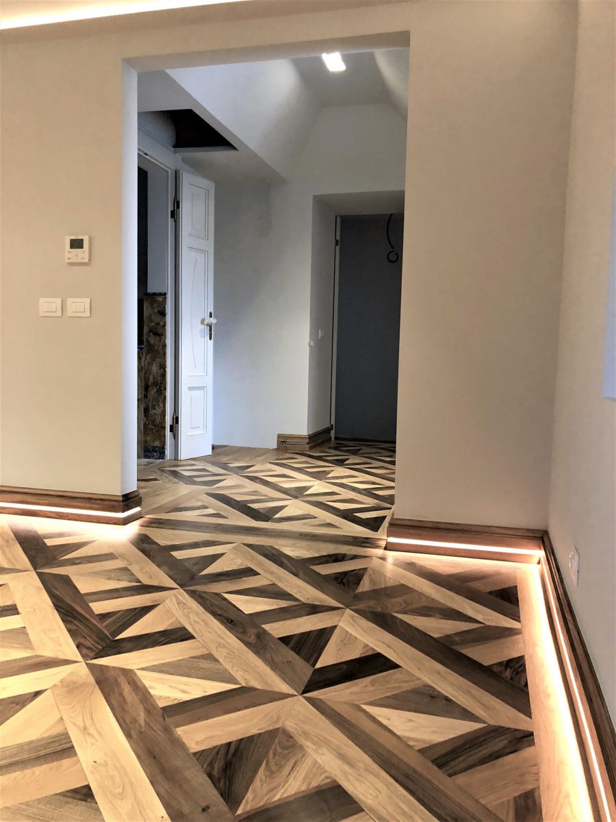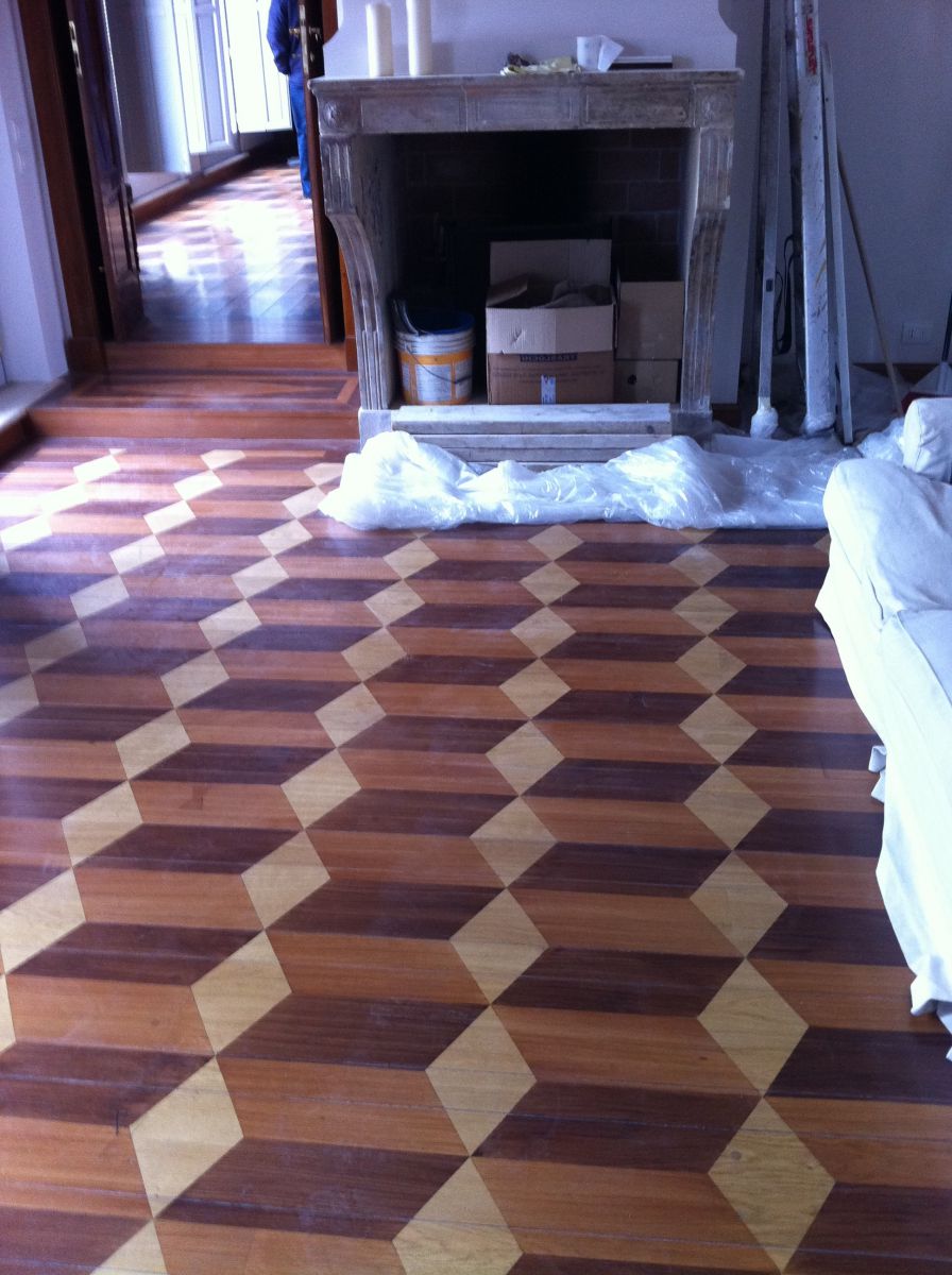 Le esigenze del cliente, le idee del progettista e della nostra equipe danno vita a pavimenti artistici realizzati con varie essenze.